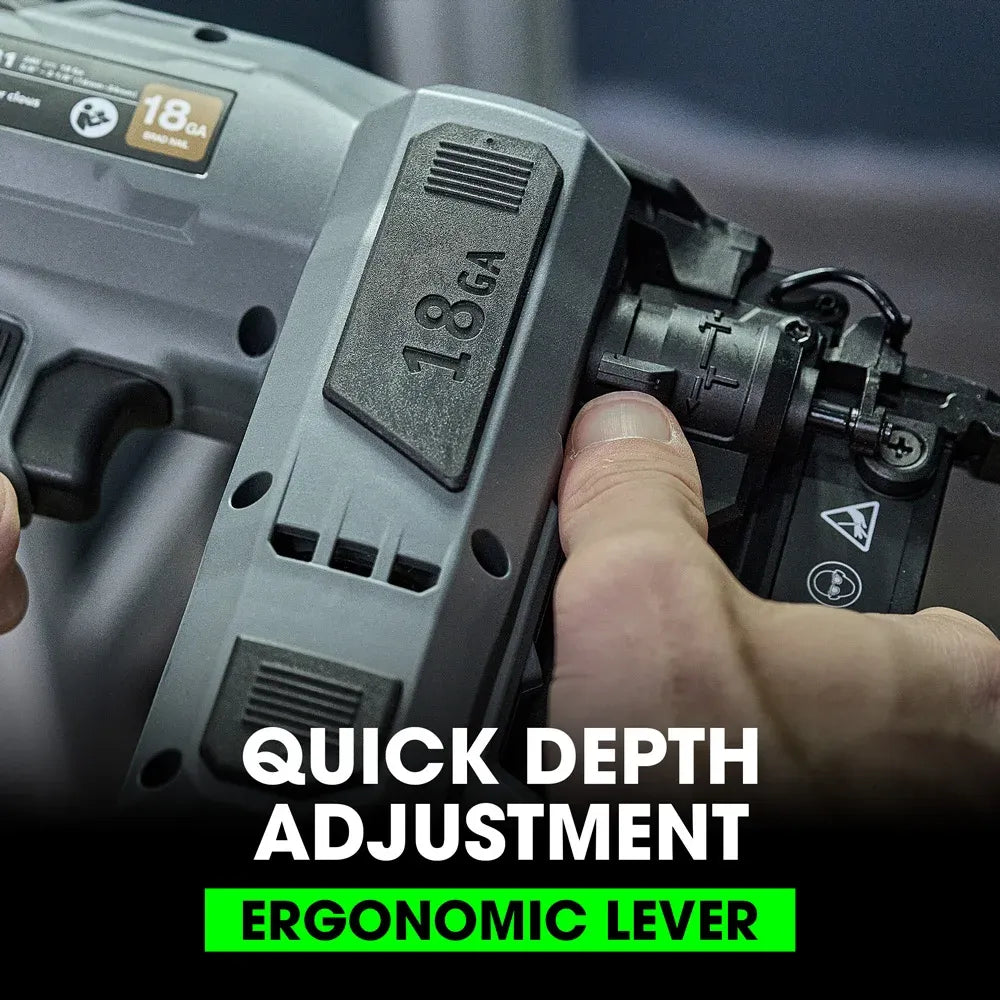 Ergonomic lever easily sets ideal nailing depth