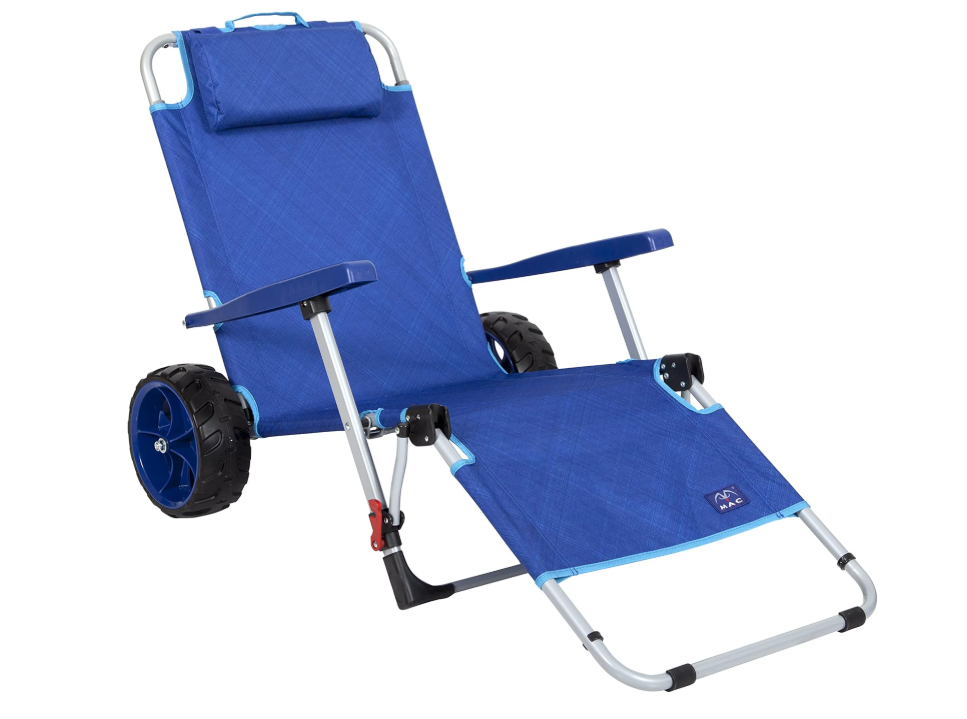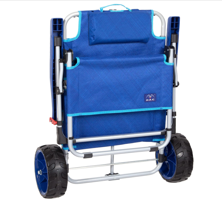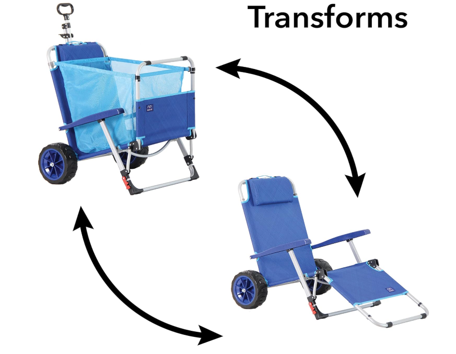2 in 1 unique design - beach day lounger doubles as a pull cart wagon with comfortable grip and adjustable telescoping handle for easy transport. folds flat for convenient storage in your vehicle, garage or closet.