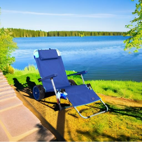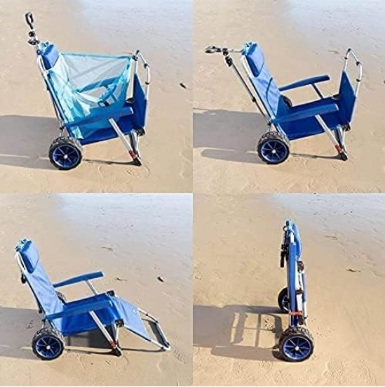 • 2-in-1 Beach Day Folding Lounge Chair+ Cargo Cart for Outdoors Sunbathing | Sun Chair, Tanning Chair, Portable, Lightweight, Lounger for Patio Collapsible with All-Terrain Wheels | Blue w/Lock