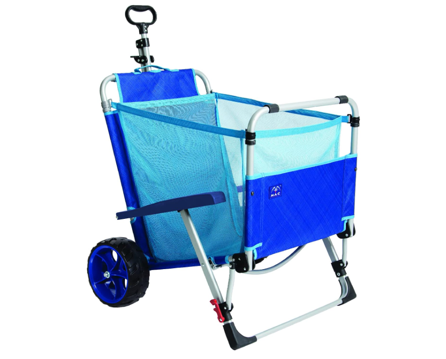 large capacity mesh basket sets up in seconds! this cart will transport your cooler, sporting goods, towels, and any other items for a day of fun in the sun! cart dimensions 18. 9"" x 18. 9"" x 18. 9"" and weight capacity : 100 lbs.