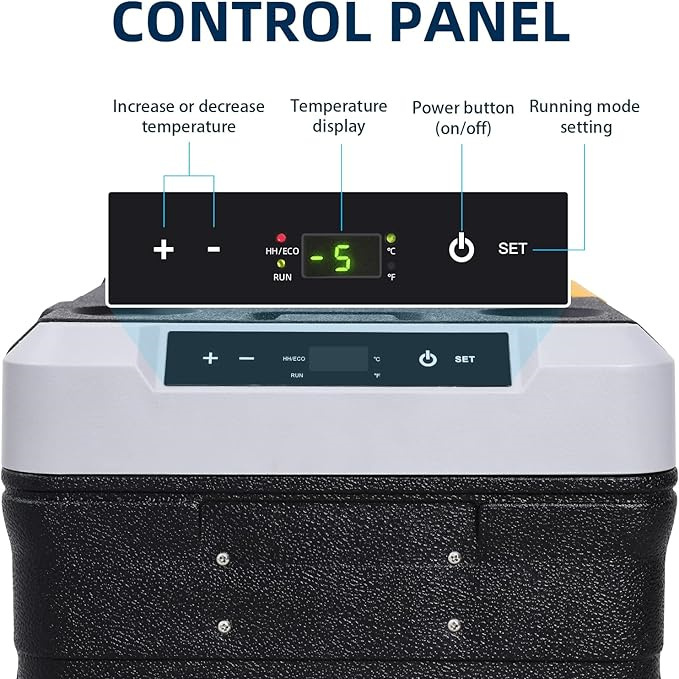 ❄️【 LCD Panel】The car refrigerator is equipped with a simple LCD control panel, which allows you to control the temperature you need.