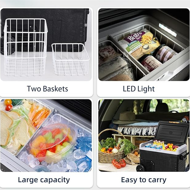 ❄️【Large Zone】The 12 Volt Car Refrigerator is equipped with two zones and is equipped with two storage baskets and a partition, it can be a refrigerator or freezer, remove the partition and you will have a 37 Quart(35L) of separate storage space, large space to store your various foods.