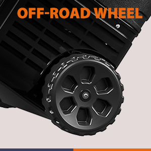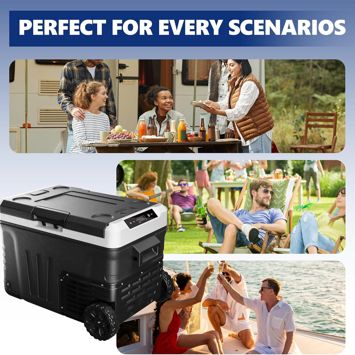 ❄️【Mobile design】The 12 Volt Portable Refrigerator uses the outdoor easy to move design, equipped with double handles and off-road wheels to reduce your burden, it is easy to carry, you can take him to enjoy the cold outdoors.