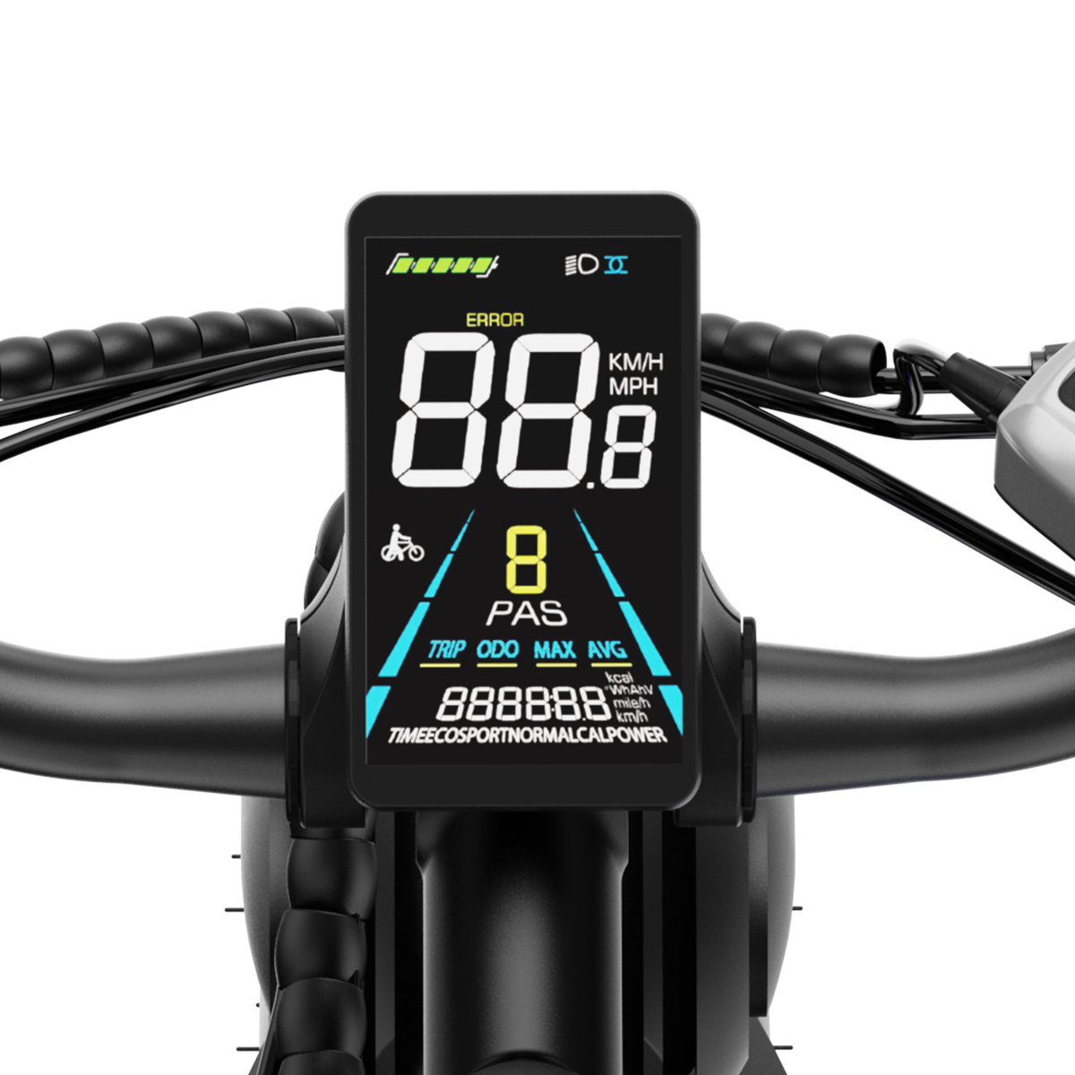 The M2 Pro features a 1800W outer rotor BLDC motor from the BAFANG sub-brand. The motor is equipped with a 5-level pedal assist system (PAS). At level 1 PAS, the controller can deliver a torque of up to 110 Nm, while at level 5 PAS, the speed can reach 36MPH or higher. The motor utilizes a sinusoidal wave structure and can rotate at a speed of 4478 revolutions per minute within one minute. The BLDC motor boasts low interference, low noise, smooth operation, high speed, high temperature resistance, and a longer lifespan (over 200,000 hours), ensuring stability and reliability in various complex environments and prolonged riding sessions.
