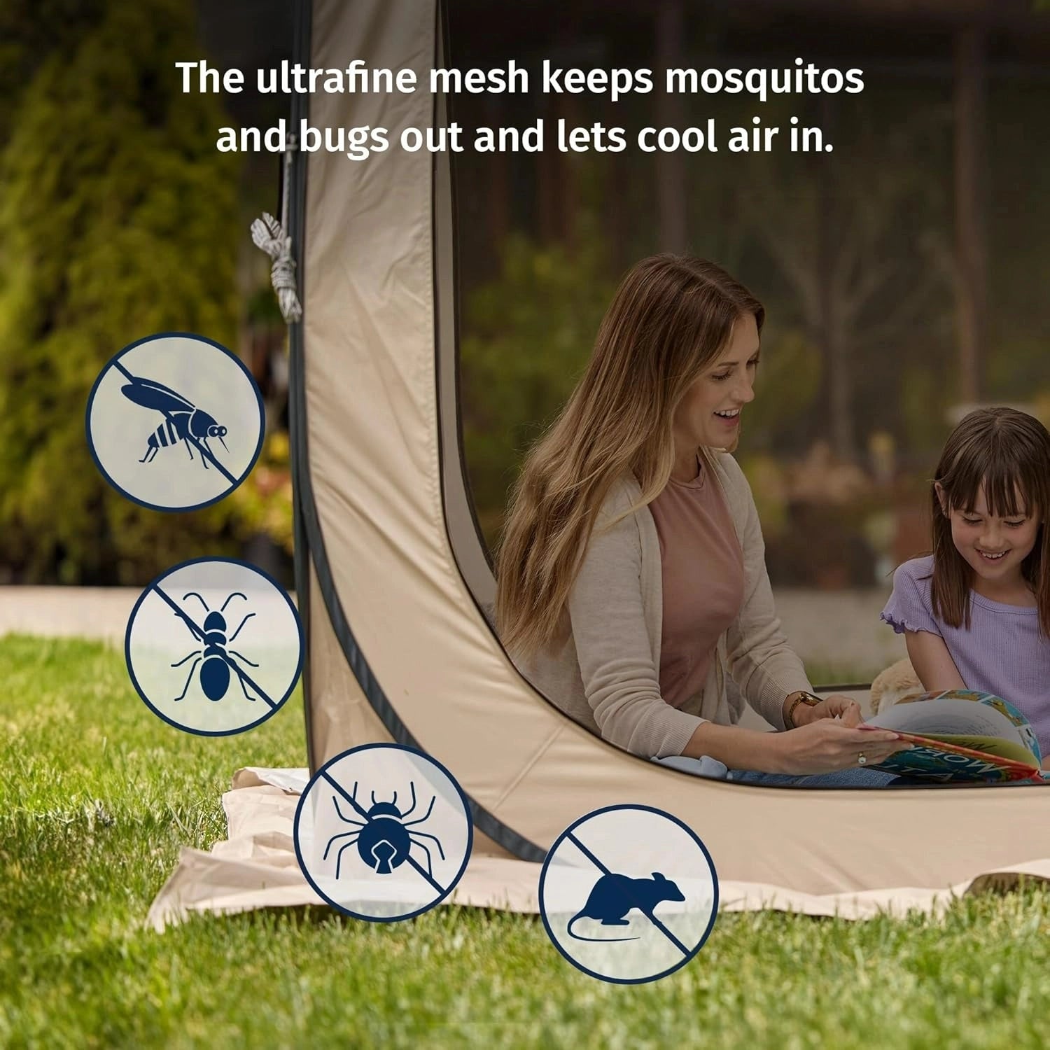 - 𝗕𝘂𝗴-𝗣𝗿𝗼𝗼𝗳 & 𝗩𝗲𝗻𝘁𝗶𝗹𝗮𝘁𝗲𝗱: The EAST OAK portable pop-up screen teent features a 4-sided B3 fine mesh design for 360° perfect ventilation to protect you from mosquitoes, bugs and anything the outdoors can throw at you. The tent body is made of high-quality Oxford fabric with anti-UV silver coating to achieve all-day UPF 50+ UV protection. Perfec for picnics, camping, and the beach