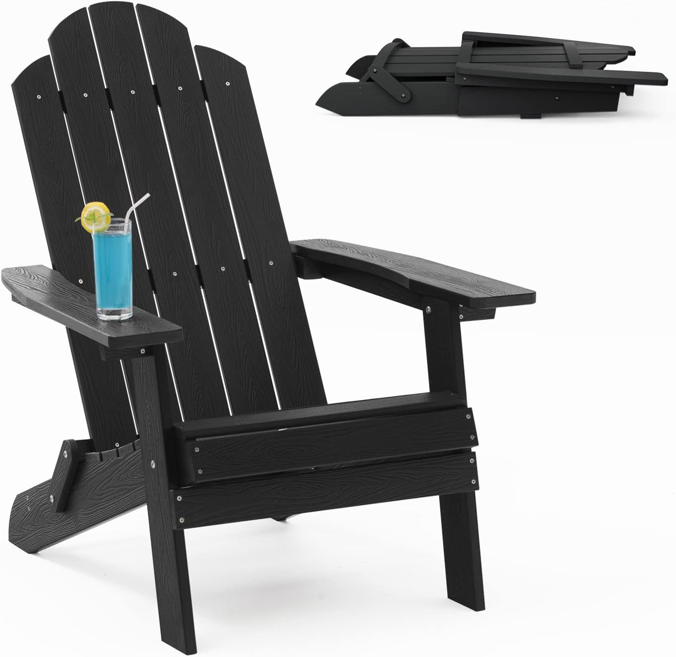 Foldable Adirondack Chair: The Folding Adirondack chair features a folding and stackable design, folds up for easy portability can be taken anywhere outdoors, and can be easily stored when not in use, saving space