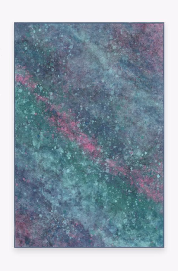 Invite your future astronauts to explore the universe with our Galaxy Rug. Celestial hues of turquoise, pink, and navy blue come together to create this abstract design with ethereal texture that depicts the infinite galaxy. A perfect rug to bring an out-of-this-world touch to any kids' room or playroom.