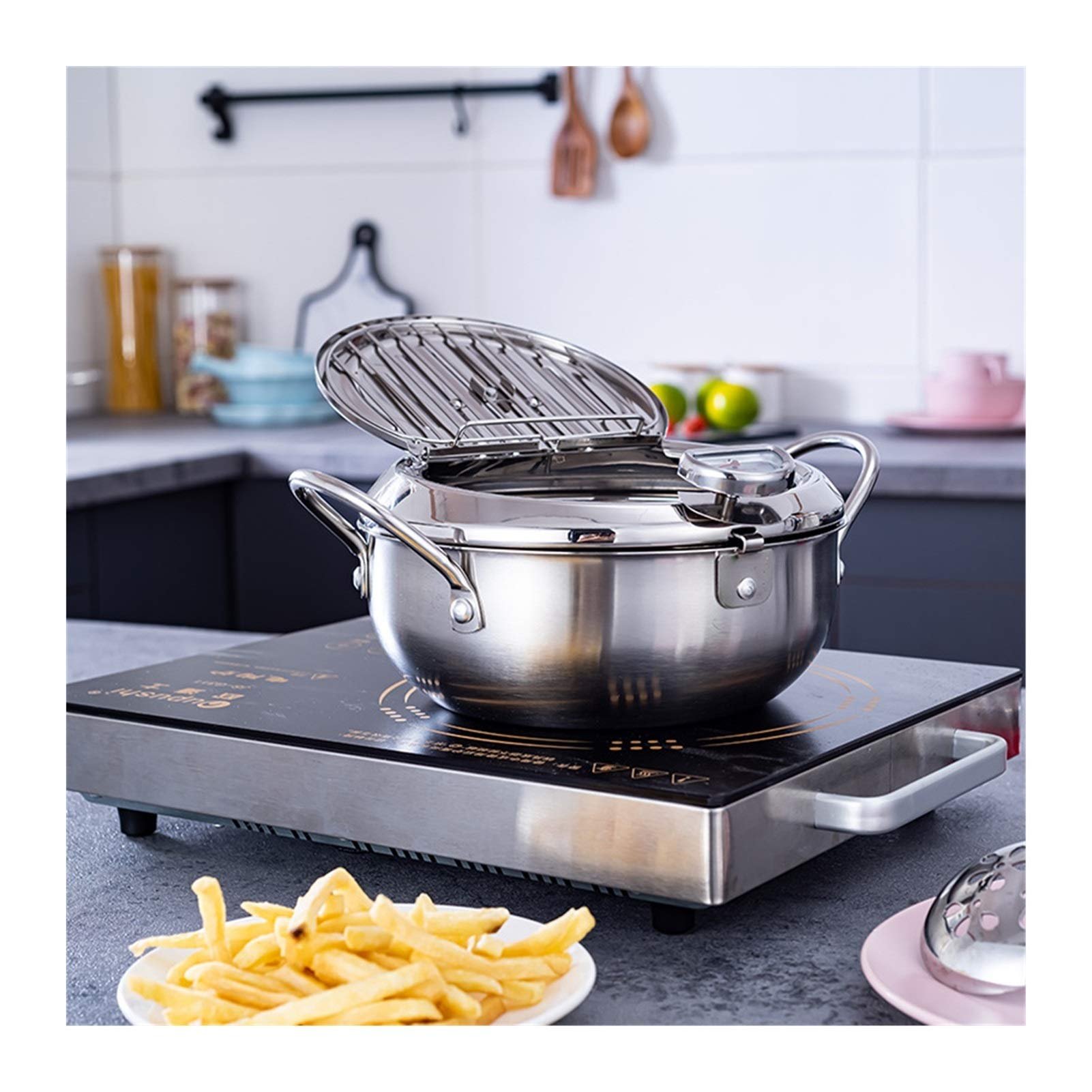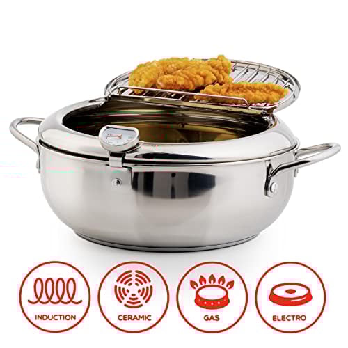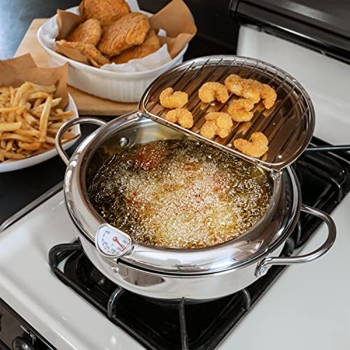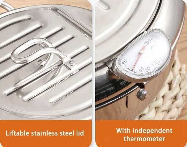 🔥Stainless Steel Frying Pot with Thermometer and Oil Drip Drainer Rack🎉