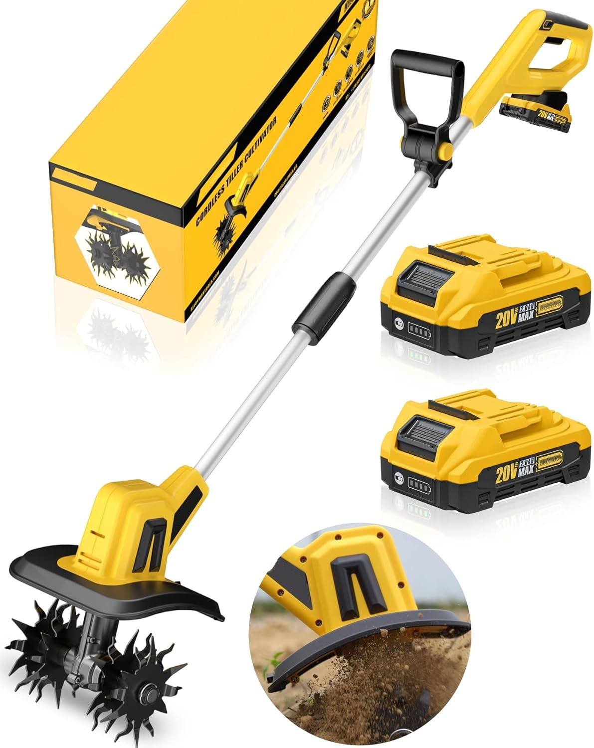 【SAFETY DESIGN】: In order to ensure users' maximum safety, the cordless tiller cultivator comes with a safety switch. Only with the simultaneous press of the safety button & trigger of the cultivator, the tiller for gardening could be activated to apply. It ensures that you and your loved ones are always safe from danger. You can use it with peace of mind.