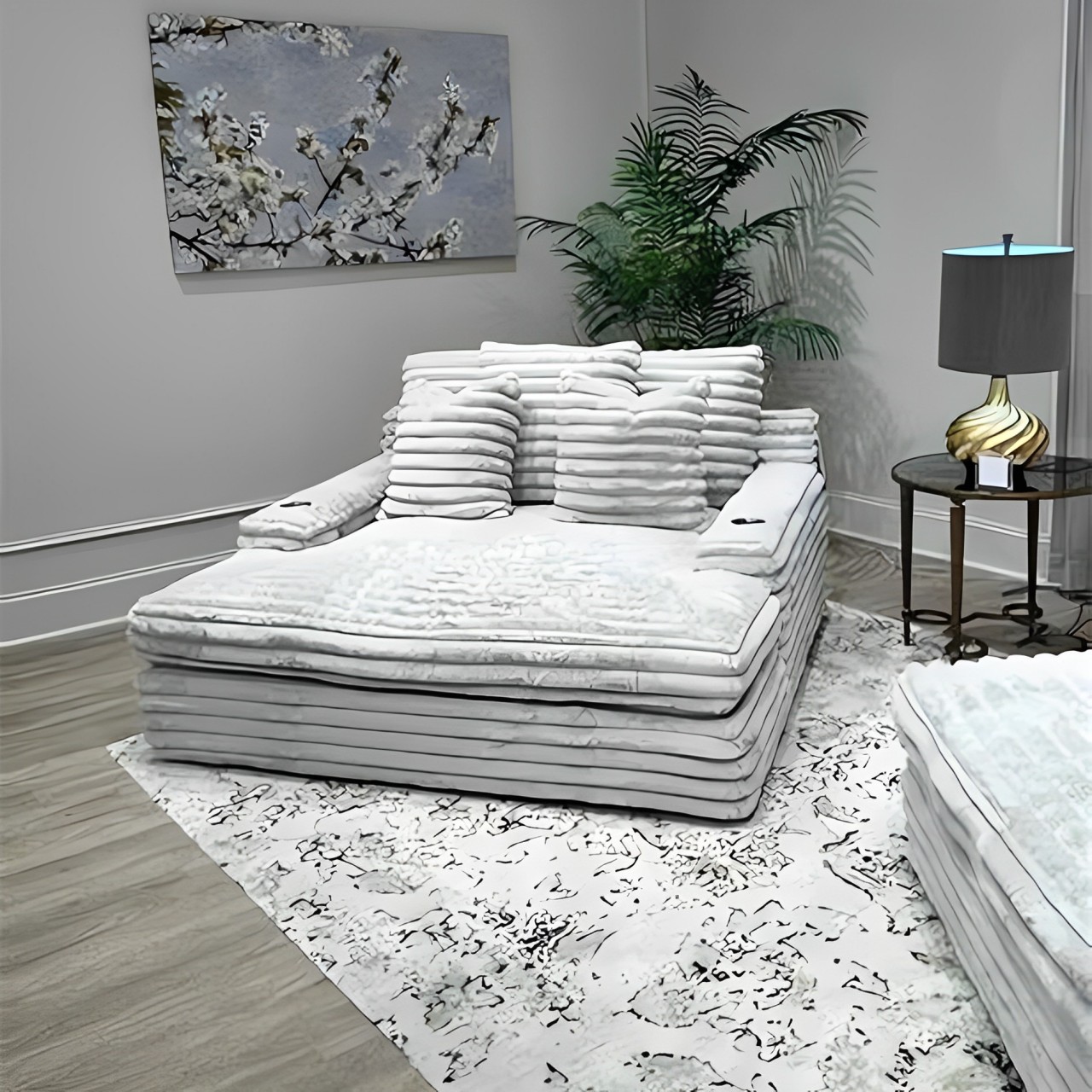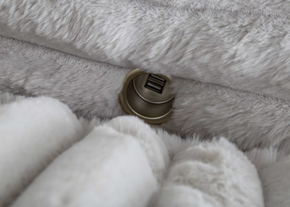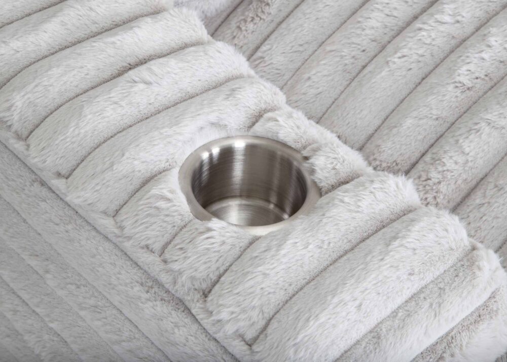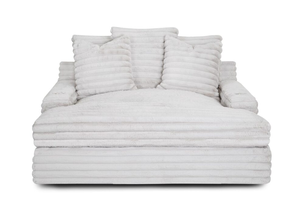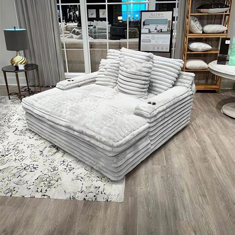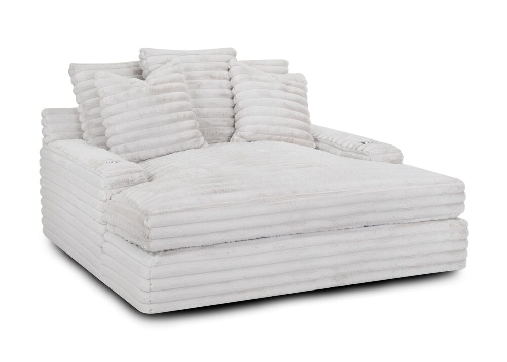 The chaise lounge has a lofty appearance and is accompanied by three back pillows and two down filled toss pillows for added comfort. With two USB ports, you can conveniently charge your electronic devices while lounging. And with two cupholders, you can easily enjoy your favorite beverage without having to get up. Whether you are watching a movie or reading a book, our Chaise Lounge is the perfect spot to unwind and relax.