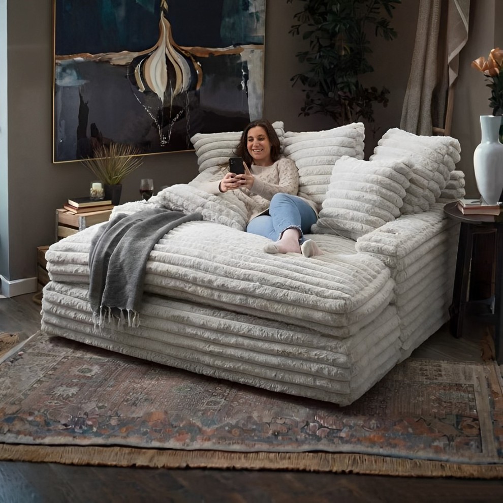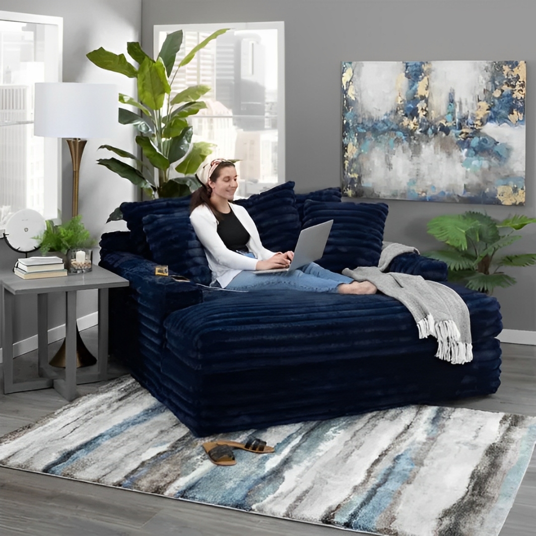 Our chaise lounge is the perfect addition to your living room for ultimate relaxation. Its ultra-dense, soft luxurious feel is made with wide, super soft corduroy fabric that is both durable and stylish.