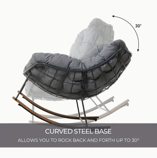 OCCASIONS: Prepare for ultimate naps outdoors. Soon to be your new favorite patio egg rocking chair seat, this chair goes beyond stylish looks and supports your body with dreamy, pillowy comfort.